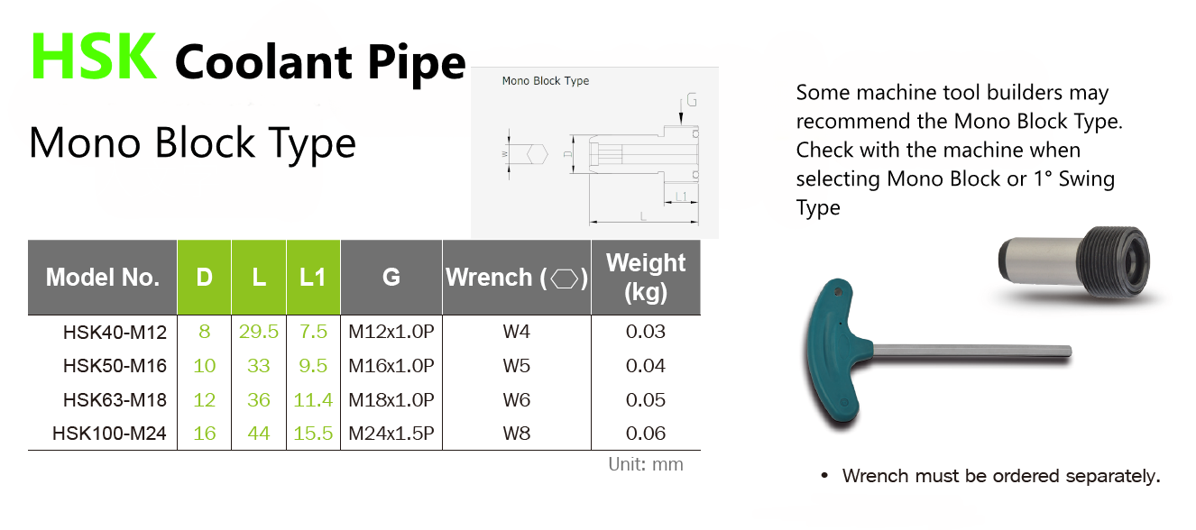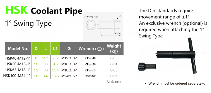 Applications: The coolant pipes for HSK tool holder.