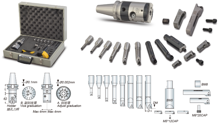 - 适用于HBOR极细微调精搪孔头和ACK/BCK刀头。
